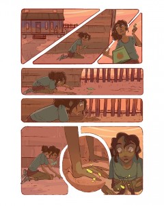 My story for the anthology is titled Green Thumb with art by the talented Dominique Evans. You can see a sample page from our story on the right; Dominique just knocked the whole thing out of the park.