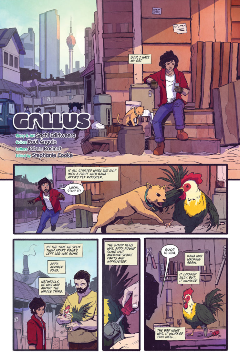 Set in the cyberpunk city of New Lanka, a teenage girl from the slums and a wanted fugitive form an unlikely friendship to save her brother whose consciousness is trapped inside an illegal scientific experiment–a half android rooster.